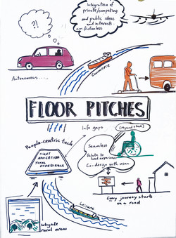 Last week I attended a conference on integrated transport, organised by Innovate UK Business Connect, in Manchester. There were several sessions, and during each I aimed to capture the salient points into A1 or A2 sized hand-drawn graphics. I produced several of these during the day, each covering different topics, albeit with some overlap in the content. This was a bit of a gamble, as I had to be responsive to various and sometimes conflicting subjects and interests, and it certainly kept me on my toes throughout the day.